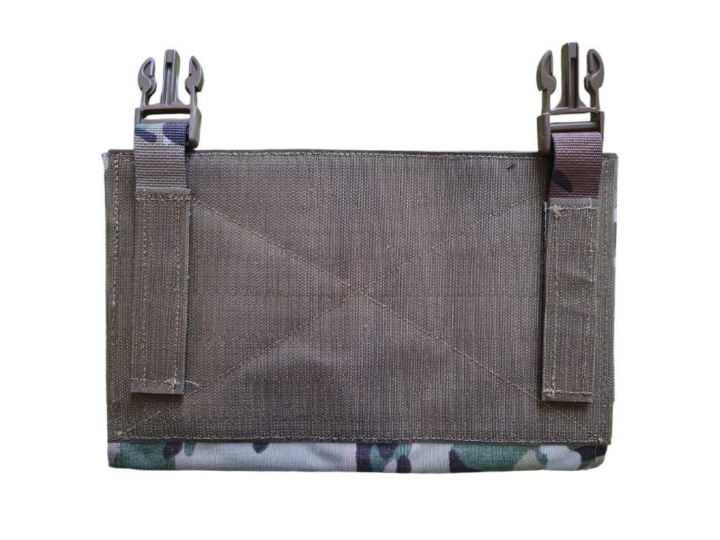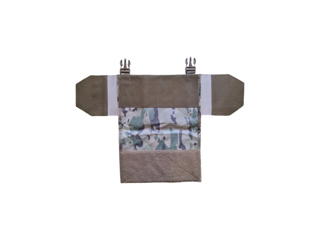 Our front platform functions as a versatile velcro pocket that is fully divisible and adjustable with side elastic straps. This flexible platform allows the addition of a front admin panel, a combination with IFAK Roller and Insert to TQ. The inner part is equipped with Velcro and is fully configurable, allowing the inserts to be used in one or two rows. The sides of the slice carrier can be easily inserted either under the pocket or on the front where they can be flipped over with an admin panel for maximum efficiency and organization.