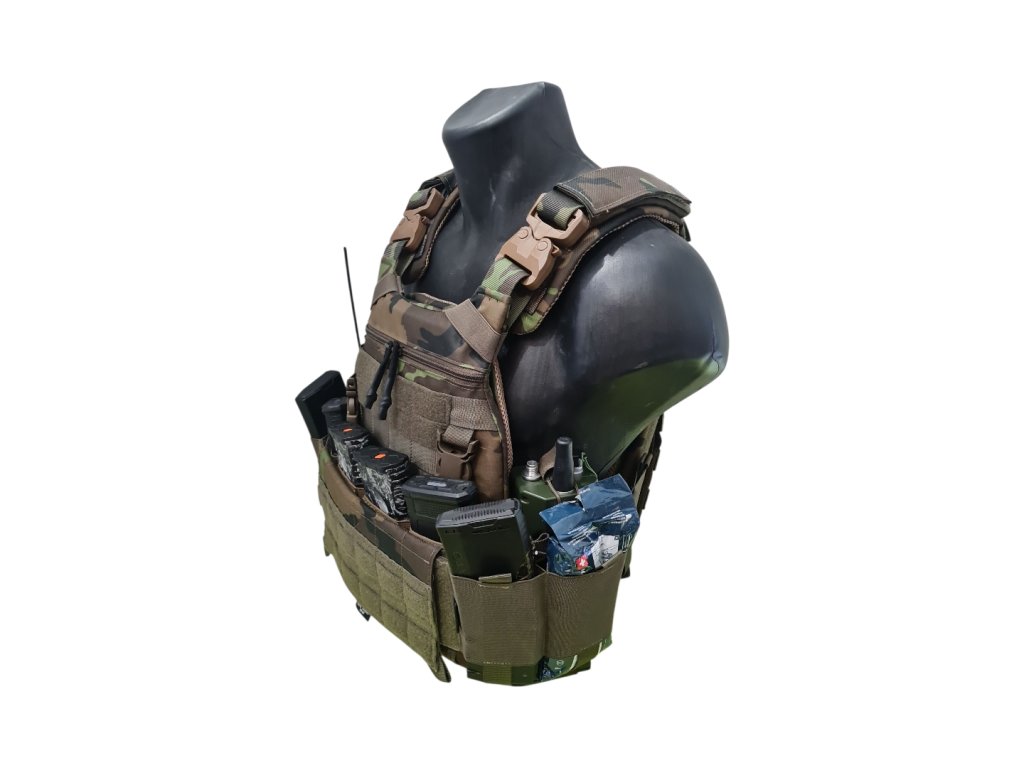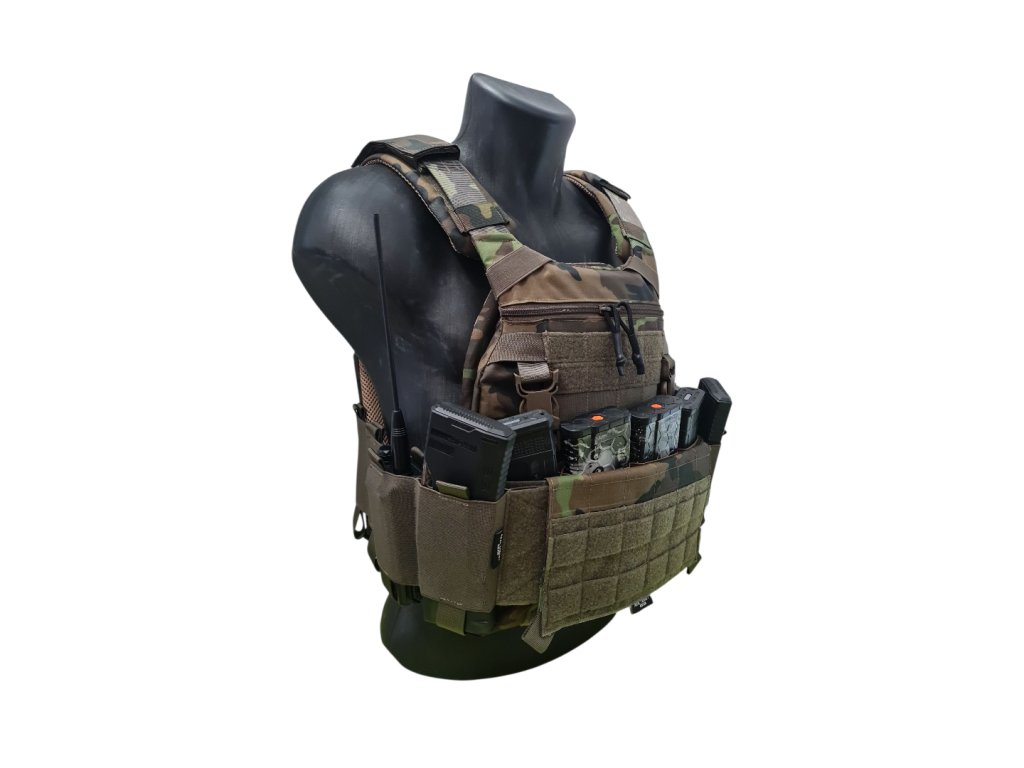 🔄 Vyměnitelné přední platformy (S/M/L) – připravené pro univerzální chest rig systémy