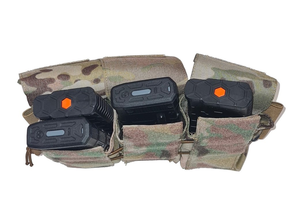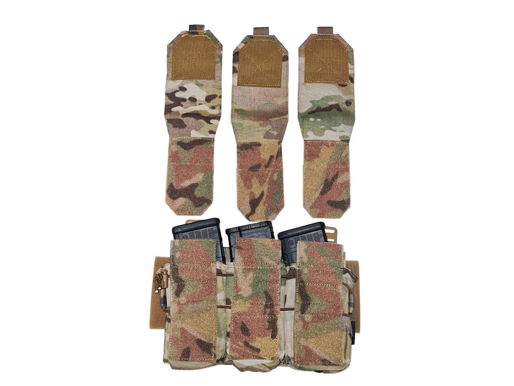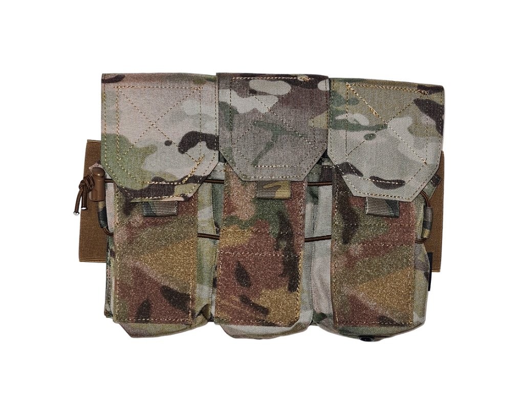 Přední platforma je navržena pro uložení 3 až 6 zásobníků. Je kompatibilní s předními typy vest, které využívají suché zipy, což umožňuje snadné a bezpečné upevnění. Chlopně lze odlepit a dovnitř si můžete dát kydexovou vložku , kterou si dotáhnete pomoci gumiček .